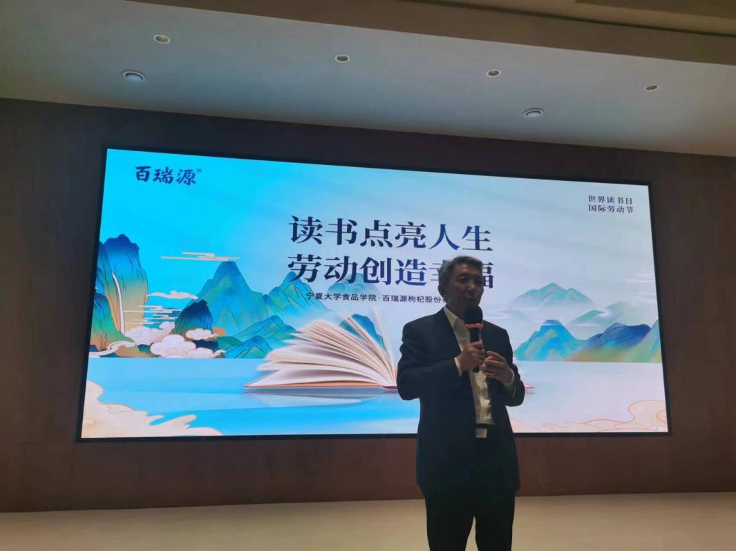 为引导广大党员教师养成“好读书、读好书、善读书”的良好阅读习惯,大力弘扬劳模精神,传递榜样力量,4月23日“世界读书日”当天,食品学院党总支与百瑞源枸杞公司党总支联合开展了以“读书点亮人生,劳动创造幸福”为主题党日活动。活动在百瑞源殷红子熟枸杞庄园开展,学院全体党员教师、学生党员代表和枸杞庄园的党员职工参加了活动。