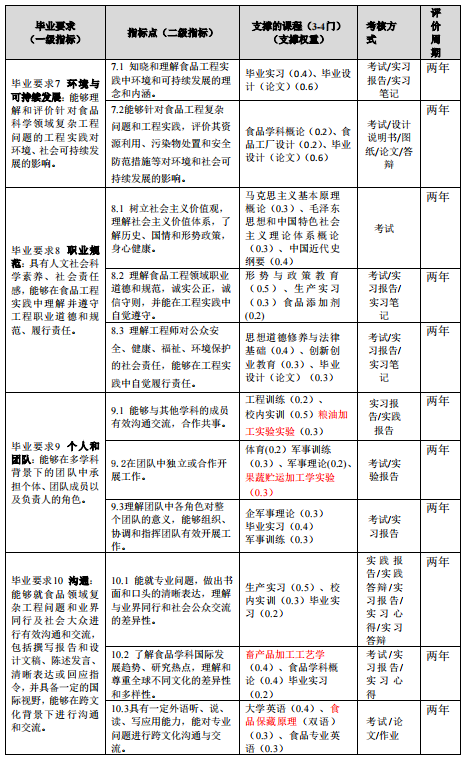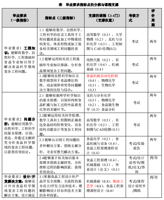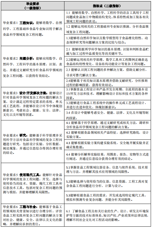 马克思主义基本原理、大学英语、高等数学、食品微生物学、食品工程原理、生物化学、食品化学、食品分析、食品技术原理、食品机械与设备、毕业生产实习、毕业设计(论文)。