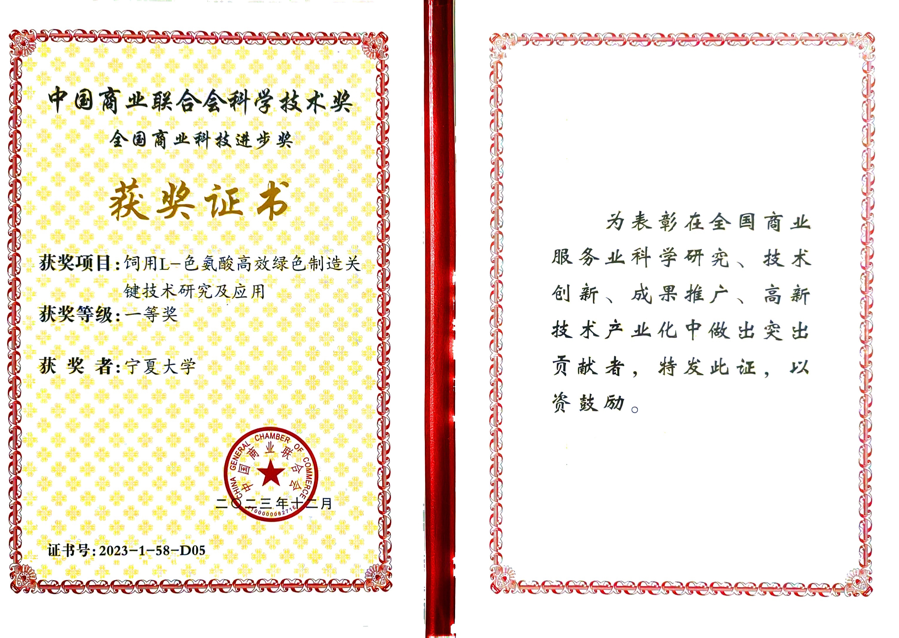 由我院健康食品生物制造研究团队方海田教授、刘慧燕副教授和魏晓博博士参与完成的成果“饲用L-色氨酸高效绿色制造关键技术研究及应用”获得了中国商业联合会2023年度全国商业科技进步奖一等奖。