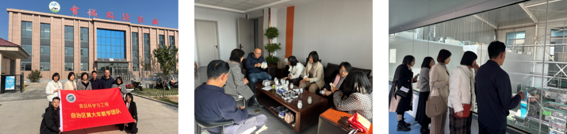 11月5日,食品科学与工程学院传统发酵先进制造团队在张惠玲教授的带领下,走访了宁夏雪泉乳业有限公司、宁夏雪域牧源乳制品有限公司、宁夏杞润元食品有限公司及宁夏上方生物科技有限公司,团队重点围绕吴忠市食品加工企业存在的问题与技术需求,以及今后的产学研合作方向开展调研。
