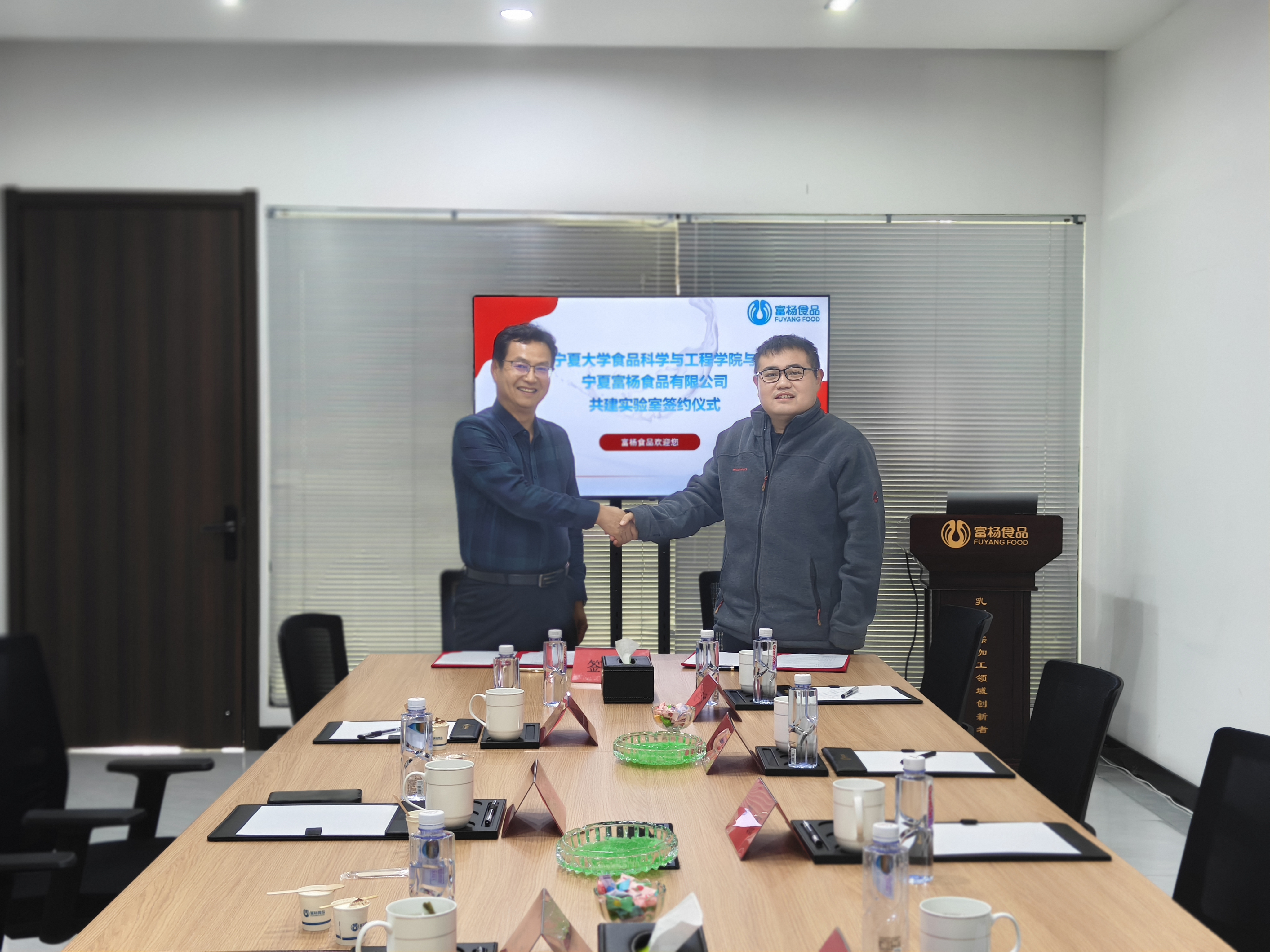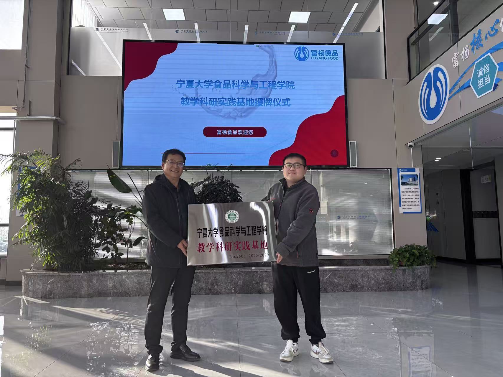 2025年12月1日下午,食品科学与工程学院党总支书记李文华一行赴宁夏富杨食品有限公司进行访问交流,双方就产学研合作、人才培养、平台共建等方面展开深入探讨,并签署合作协议。学院教师代表剧柠教授、魏超昆博士、郭帅博士一同参与交流。