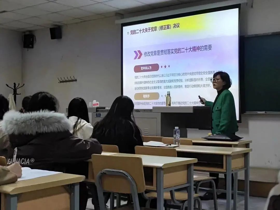 学习宣传贯彻党的二十大精神,要以党章为脊骨,强化理论武装,学好“必修课”。潘瑞详细讲述了中国共产党章程基本概述、党的二十大修改党章的重大意义、党的二十大关于党章(修正案)决议及二十大党章的30个重要修改。她指出,修改党章是深入学习贯彻党的创新理论的需要,是推进党和国家事业发展的需要,是深入推进新时代党的建设新的伟大工程的需要,是贯彻落实党的二十大精神的需要。