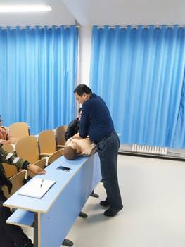 之后,冯老师现场进行了动作讲解,同学们积极参与并亲身体验了如何进行正确的心肺复苏,在仿真的救护情景下学到了很多应急知识,掌握了基本急救方法。最后,冯老师对此次讲座进行了简单的总结,在遇到突发事件时,患者的生命就掌握在身边的人的手中,不能只是依靠医生。希望同学们在遇到突发事件时,不要惊慌,伸出手,利用急救知识对患者进行急救,为医护人员争取时间。