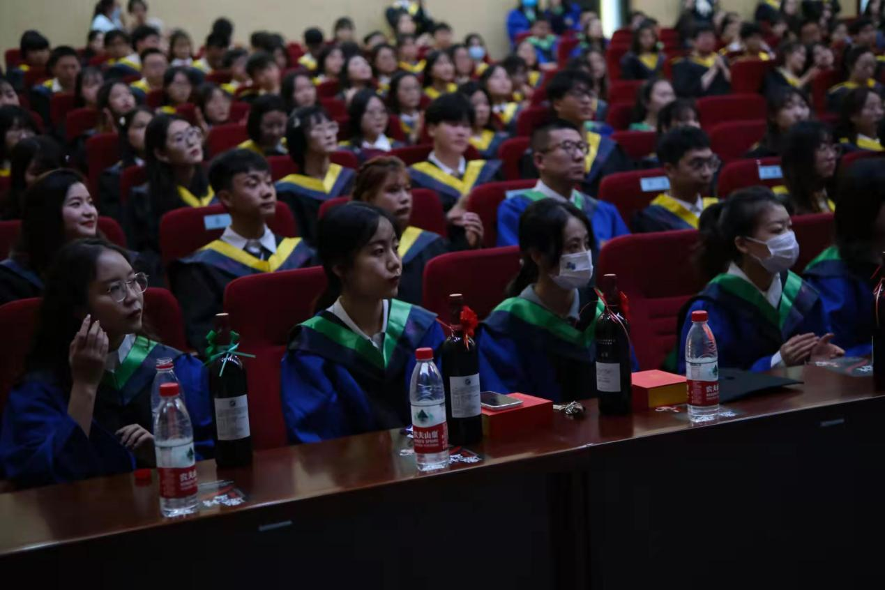 在毕业典礼尾声,张宁书记作毕业致辞。他指出,在经历建立学院、抗击疫情等一些重大事件,大家紧紧团结到一起,体现了食葡学子的风采。当大家走出校门,无论是顺境还是逆境,都要做一个心存善念,拥有感恩之心的人。拥有感恩之心,才会使在未来发展的道路上越走越远,感恩父母的养育之恩,感恩师长的指点迷津,感恩母校,感恩祖国成为我们足够的底气,我们生在国旗下,长在春风里,人民有信仰,国家有力量,生逢盛世,要不负时代、不负使命!多一些宽容和理解,就会少一些争吵和冷漠。葡萄酒有着醇香的后劲,也希望同学们细品生活的滋味。