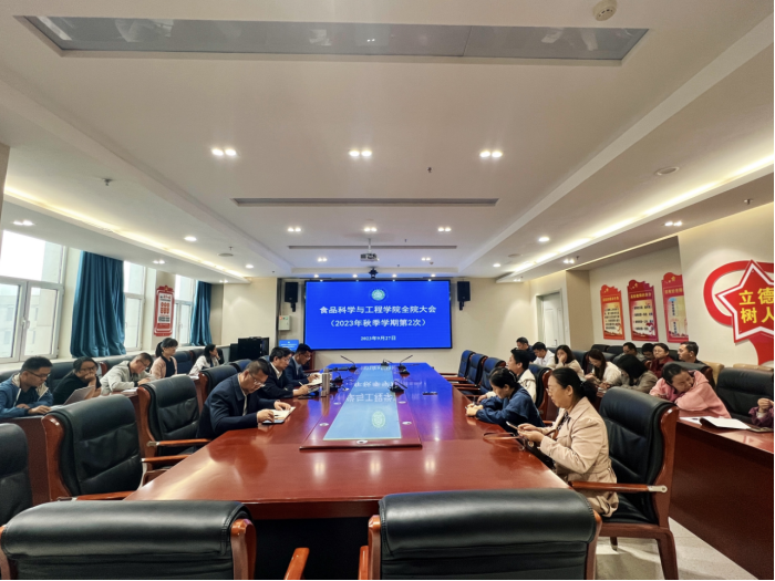 9月27日下午,食品科学与工程学院召开秋季学期第二次全院大会,学院班子成员及全体教师参加,会议由刘源院长主持。