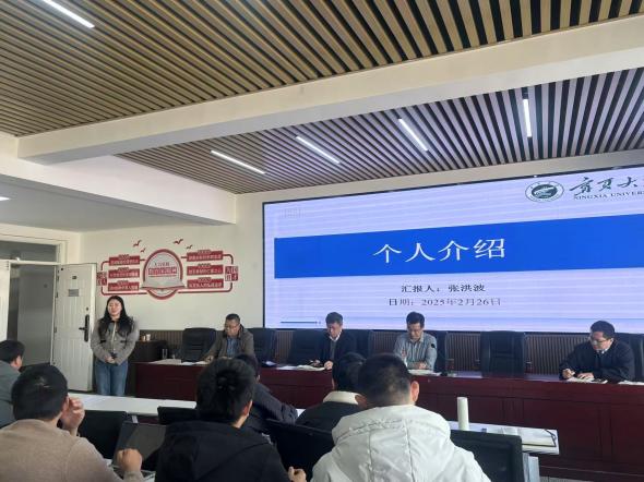 大会开始,学院新入职的张洪波老师进行了自我介绍,分享了自己的教育背景与学术兴趣,并表达了加入学院后期待与大家共同进步、共同奋斗的愿望。张老师的到来为学院注入了新鲜血液,增强了教学科研的力量。