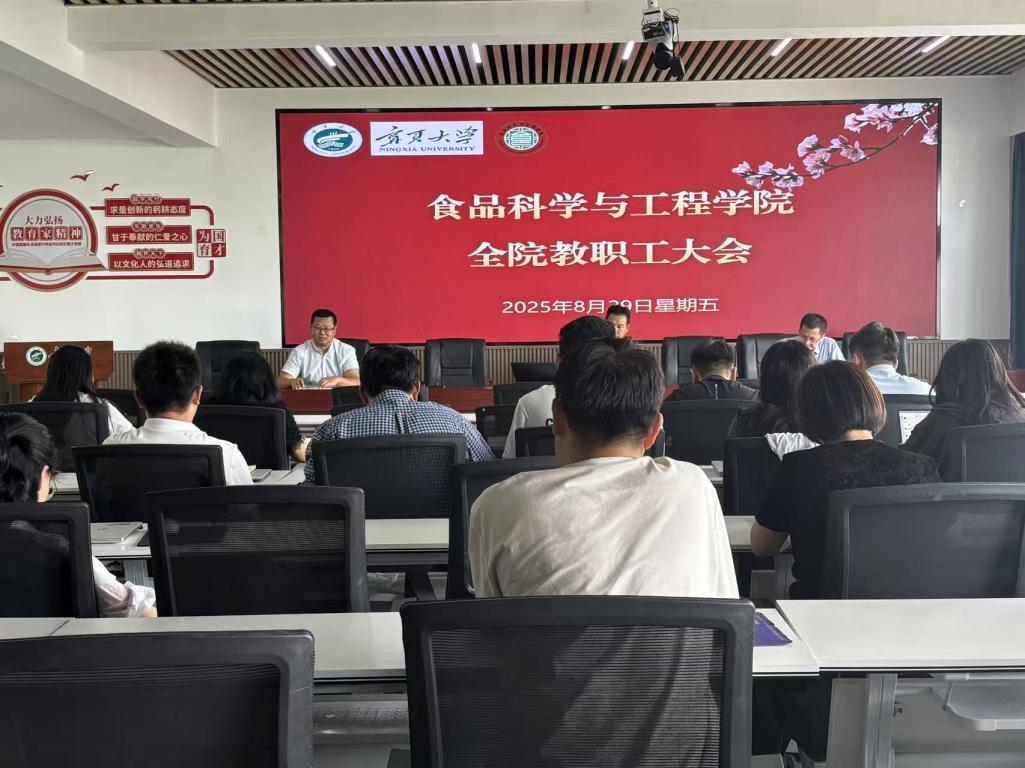 8月29日下午,食品学院在明远楼512会议室召开新学期工作部署暨2025年秋季学期第一次全院大会,全面部署新学期党建、教学、科研及学院发展等重点工作,全体教职工参会,会议由李文华书记主持。