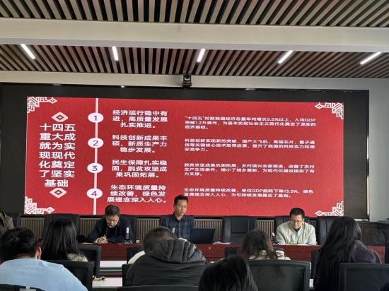 会议最后,李书记主持开展集体政治学习,带领全体教职工系统学习党的二十届四中全会精神。他从全会召开的时代背景和重大意义入手,深入解读了全会确立的指导方针和主要目标,重点阐释了“十五五”时期在推进中国式现代化进程中的战略定位和使命任务。李书记强调,要坚持党的全面领导,进一步凝聚思想共识和奋进力量,准确把握全会提出的战略任务和重大举措。他要求,全体教职工要把学习贯彻全会精神作为当前和今后一个时期的重要政治任务,与学院改革发展和年度重点工作紧密结合,切实将学习成果转化为推动学院高质量发展的实际成效。