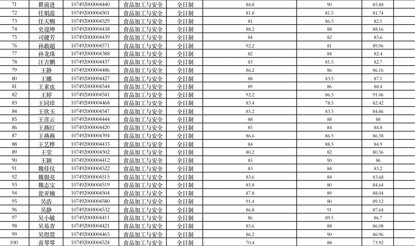 食品与葡萄酒学院2022年硕士研究生招生一志愿通过国家线名单