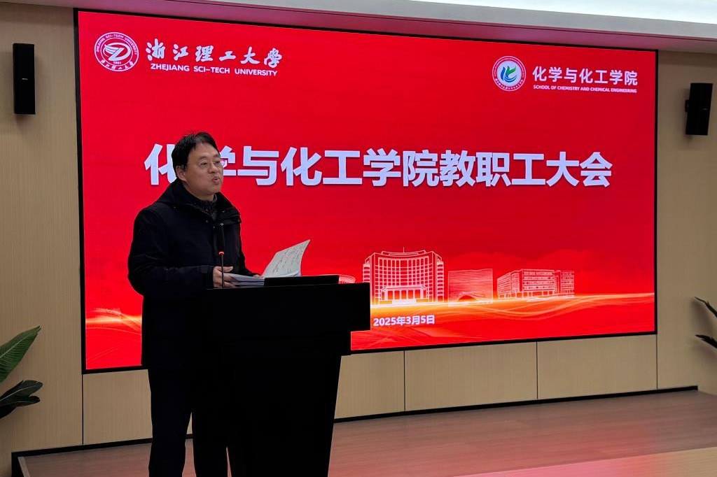 院长祝诗发对学院2024年工作完成情况进行了总结,并阐述了学院本年度工作的总体思路。他指出,2025年是学校锚定争创“双一流”目标的关键之年,需要全院师生继续团结奋斗,主动担当作为,形成更多“1到10”“10到100”的标志性成果,为助力学校登峰学科发展和高水平大学建设贡献化学力量。
