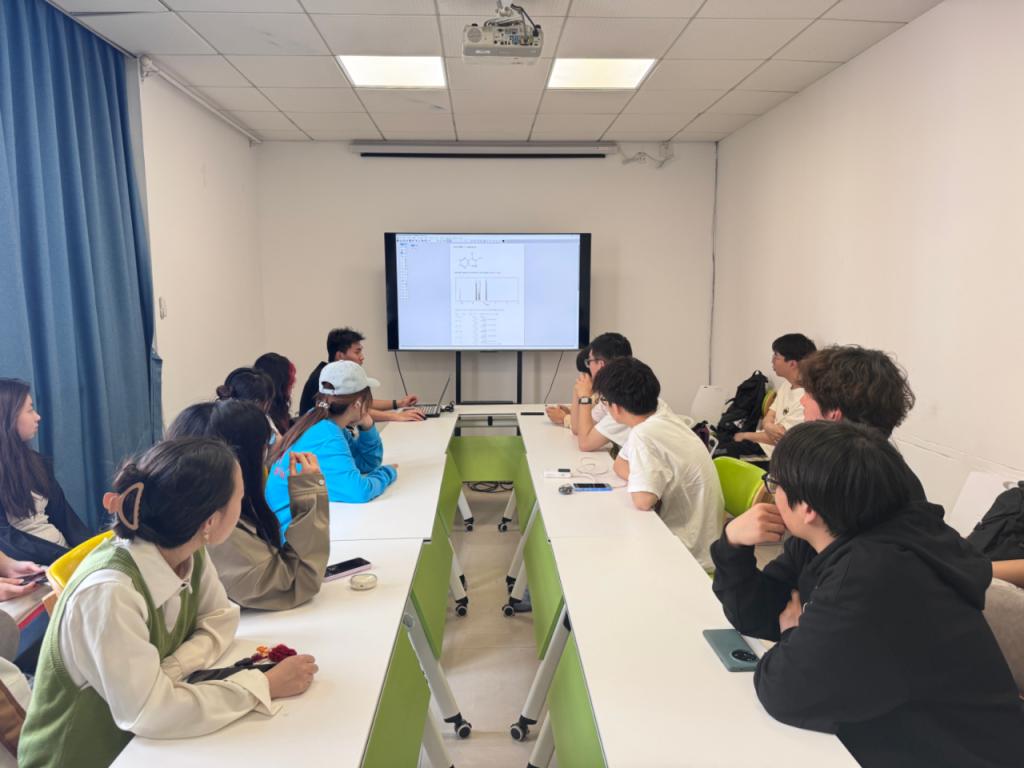 练习环节,学生们迅速投入,面对复杂有机分子绘制任务,起初眉头紧蹙,随着 ChemDraw 操作渐熟、大胆尝试 AI 助力,困惑转为专注。小组交流时,思维碰撞出火花,这个 AI 预测功能太绝了,帮我搞定难画的杂环”“用模板改改这里,结构更完美等讨论声此起彼伏,分享代表上台时自信满满,交流经验、提出疑问,形成良好学习闭环。