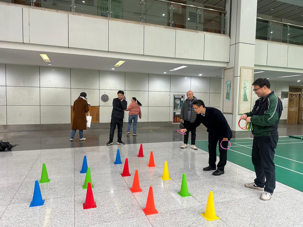 老师们在高教西公园完成两个服务点的签到后,便来到19号楼大厅参加趣味飞镖和欢乐套圈比赛。