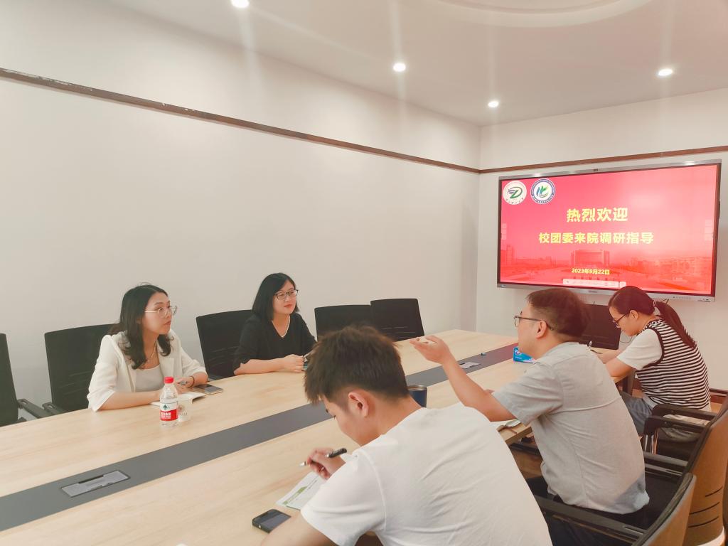 9月22日下午,校团委书记祝莺莺、校团委办公室主任倪泽莹一行来院走访调研,学院党委副书记王勇能、学工办主任胡丽和全体辅导员参加座谈会。