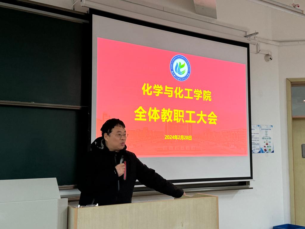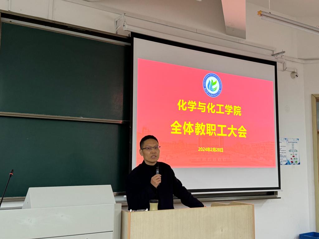 施鹏传达了校领导在新学期学校工作部署会上的讲话精神,分析了学院目前面临的形势以及挑战。他指出,全体教职员工要抢抓机遇、奋发向前,以高标准的姿态完成本学期各项任务,为学校的优势学科做好支撑,为学校争创“双一流”贡献力量。
