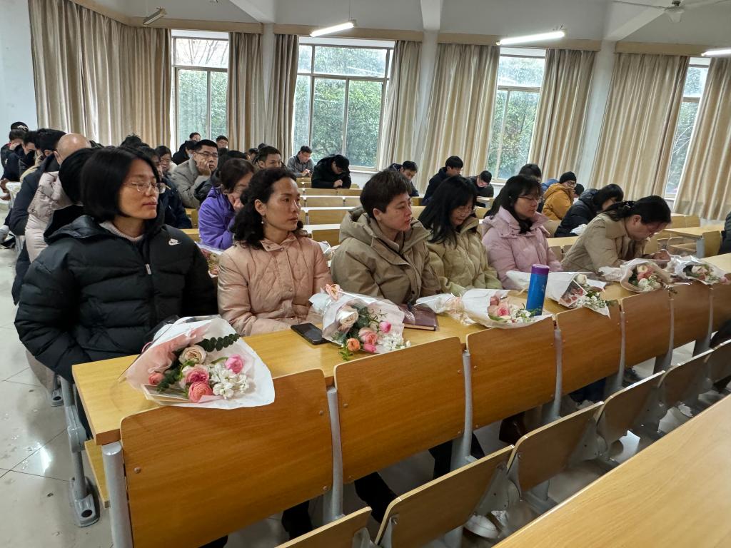 会议期间,院工会为每位女教职工准备了即将到来的三·八节鲜花,新入职的教师与全院教职工见面。