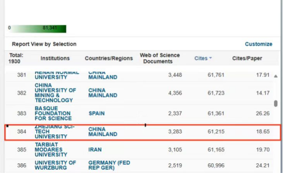 2024年3月,最新的ESI(Essential Science Indicators,基本科学指标)数据显示,浙江理工大学化学学科以全球第384名位次成功进入全球排名前2‰,本次化学学科全球共有1930家机构进入前1%。