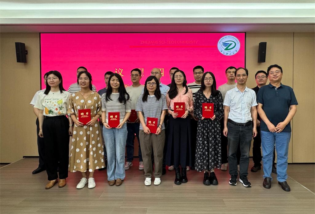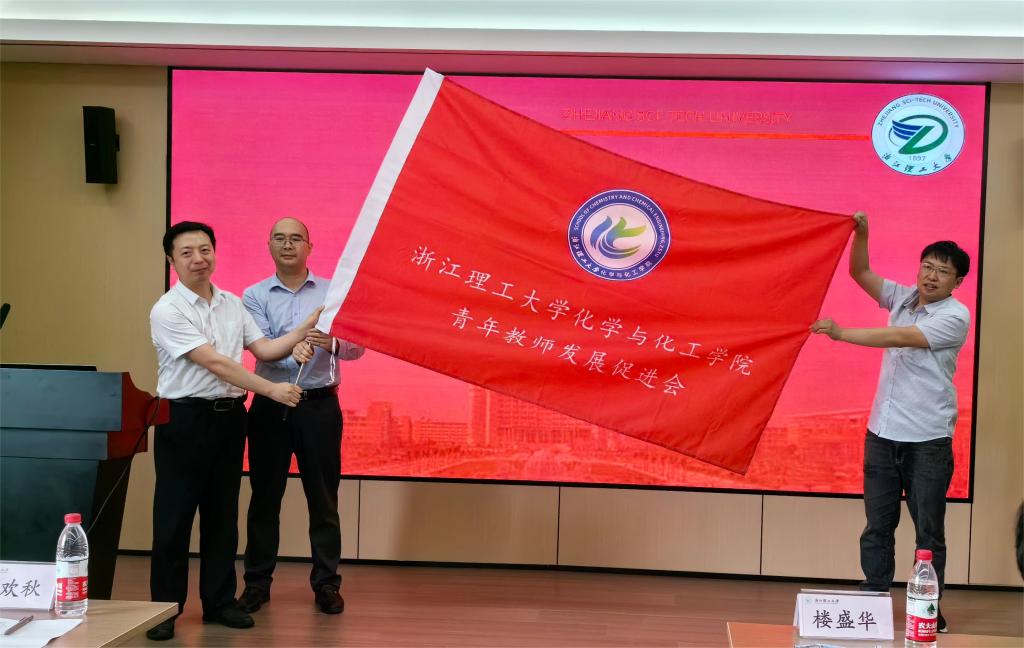 奉小斌为首届青促会授旗,青年教师张志军代表理事会接旗。
