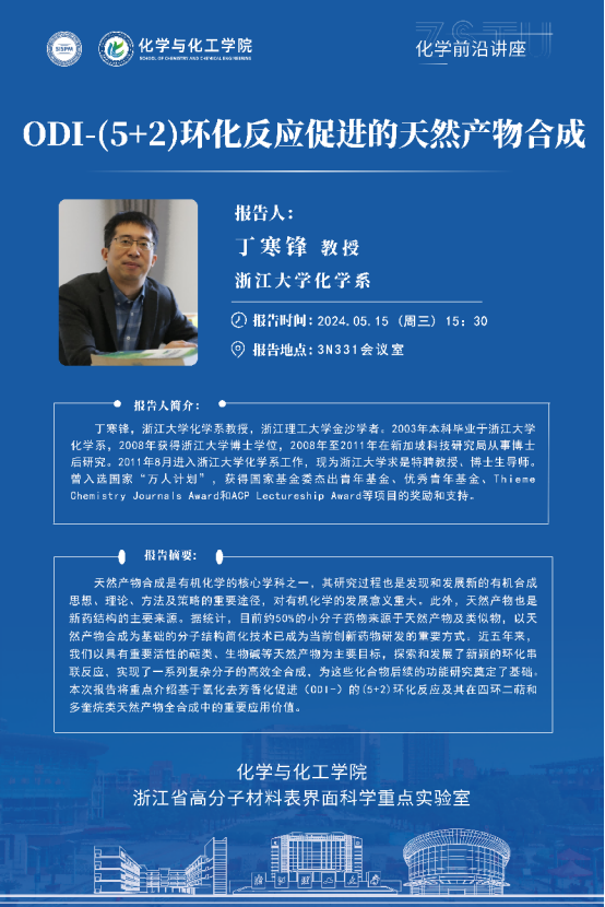 【学术讲座】ODI-(5+2)环化反应促进的天然产物合成