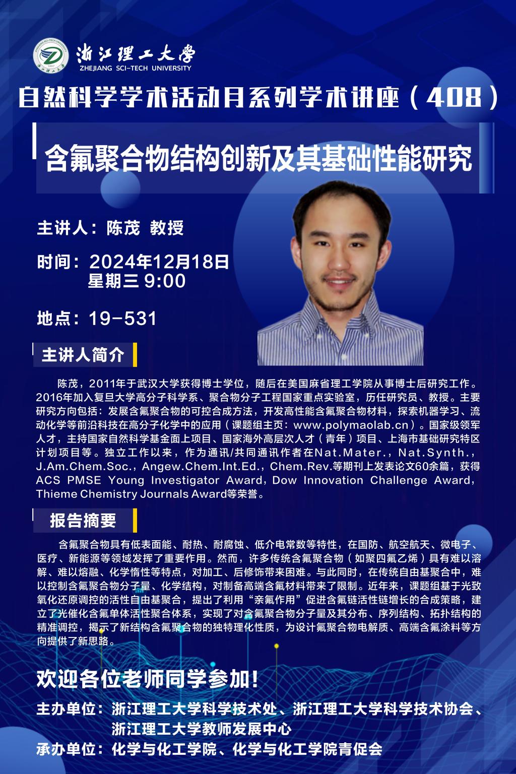 【学术讲座】含氟聚合物结构创新及其基础性能研究
