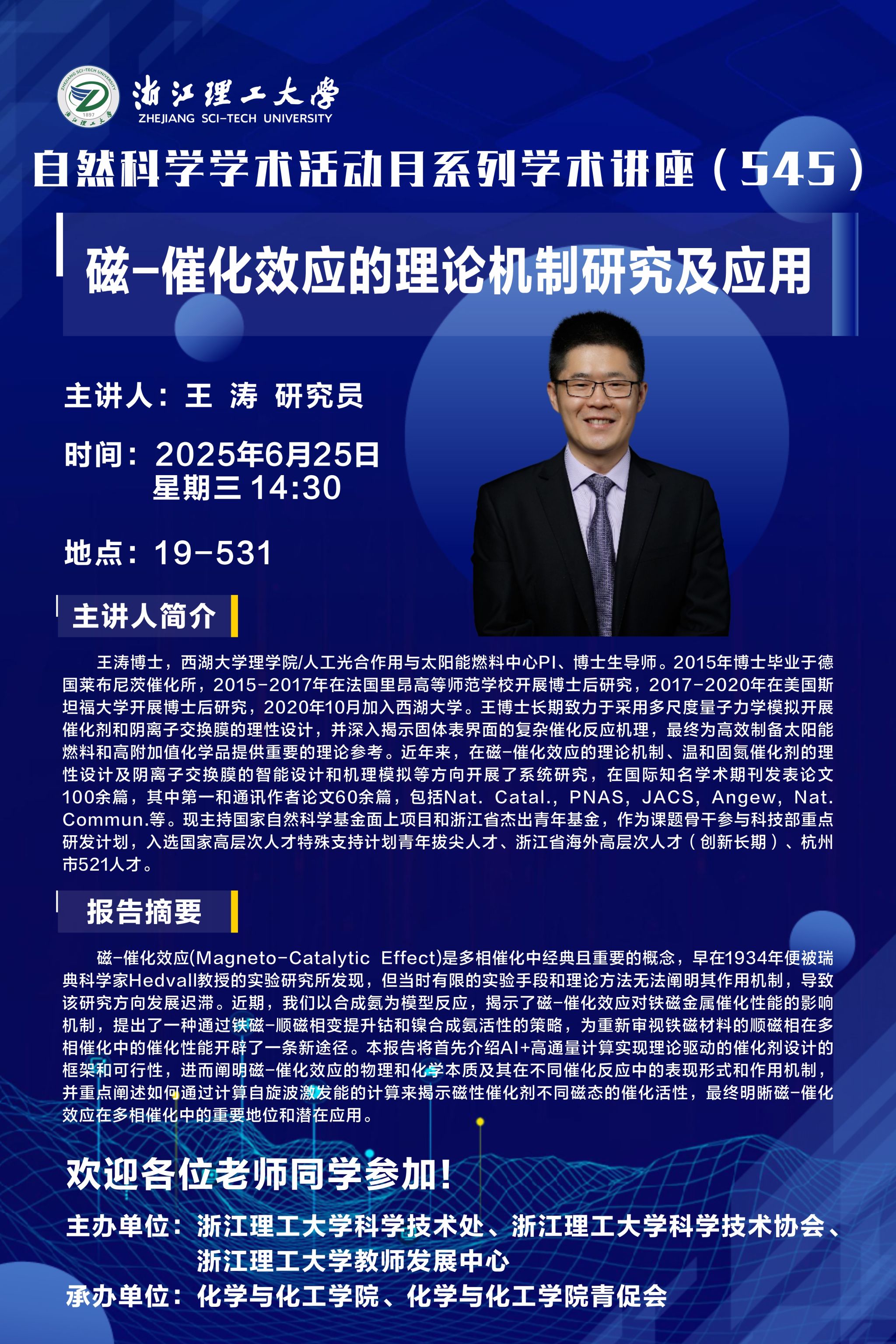 【学术讲座】磁一催化效应的理论机制研究及应用