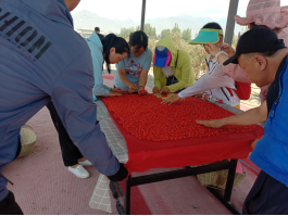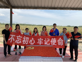 首先,在百瑞源枸杞种植基地企业党员的陪同下,食品系党员们参观了枸杞种植基地,了解百瑞源有机枸杞种植情况,并与百瑞源工作人员就红果、黄果和黑果枸杞的枸杞种植和采摘深入交流。在百瑞源工作人员的组织下,食品系教师进行了摘枸杞比赛,通过劳动实践体验枸杞产业工人的日常工作,并以采摘的枸杞摆出党旗,献礼建党100周年,以实际行动践行“不忘初心,牢记使命”的党性宗旨,促进产学研发展。