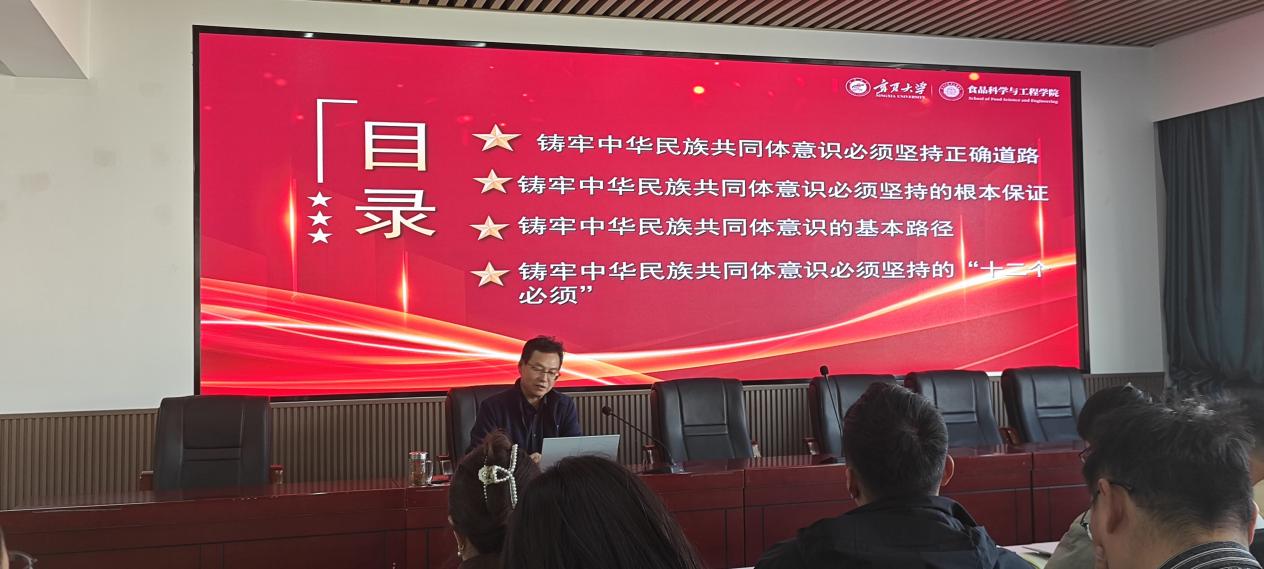 为深入学习贯彻习近平总书记关于加强和改进民族工作的重要思想,铸牢中华民族共同体意识,推进新时代党的民族工作高质量发展,11月 20 日,食品科学与工程学院组织开展了民族宗教政策理论专题宣讲活动。本次活动由学院党总支副书记李文华进行宣讲,学院全体教职工参加了此次活动。