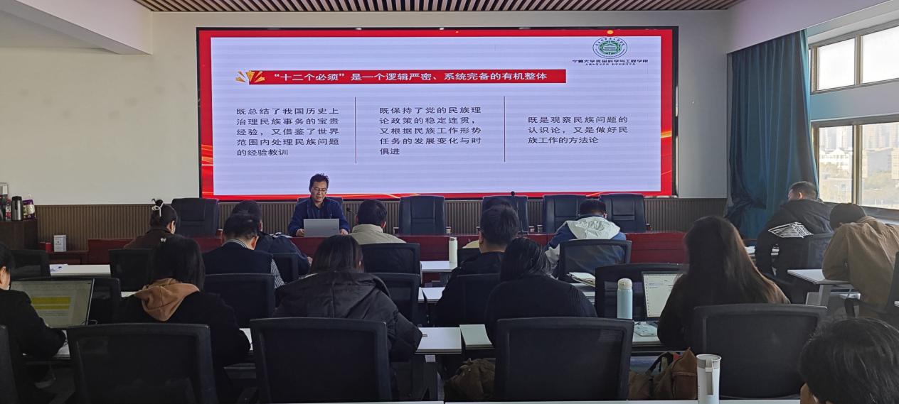 通过深入学习习近平总书记对中国特色解决民族问题的正确道路作出的“八个坚持”的精辟概括,对新中国成立70年民族工作宝贵经验进行的“九个坚持”的深刻总结,以及党关于加强和改进民族工作“十二个必须”的重要思想,广大教职工进一步加深了对民族宗教政策理论内涵与要点的理解和把握,确保在思想和行动上与党中央保持高度统一,为营造广大师生和谐共处、协同发展的教育环境和学院各项事业高质量发展奠定了坚实的理论基础。