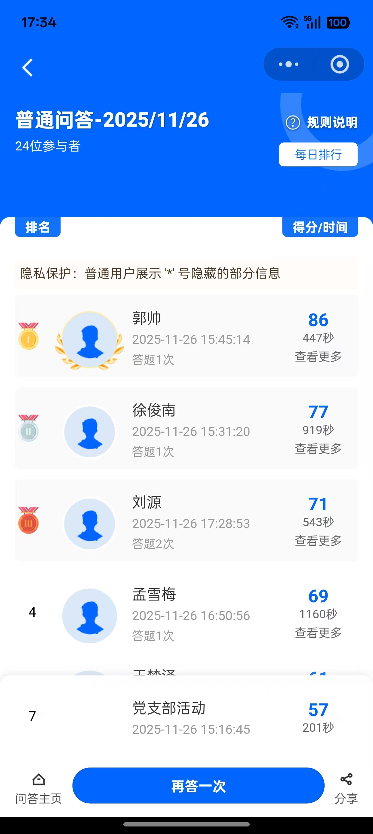 活动分为两个环节。第一环节为虚拟仿真实践,党员教师通过国家虚拟仿真实验平台(ilab-x.com)完成“追寻初心·梁家河篇虚拟仿真实验”,在沉浸式体验中重温红色历史,感悟初心使命,增强党性修养。第二环节为知识竞答,围绕党的二十届四中全会相关内容展开,以赛促学、以学促行,进一步巩固理论学习成果。