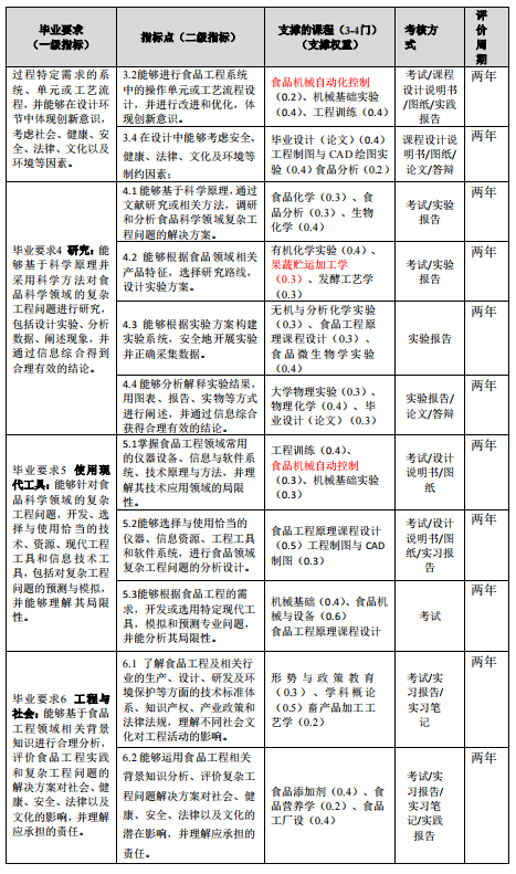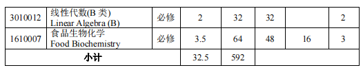 马克思主义基本原理、大学英语、高等数学、食品微生物学、食品工程原理、生物化学、食品化学、食品分析、食品技术原理、食品机械与设备、毕业生产实习、毕业设计(论文)。