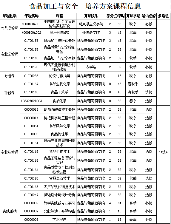 跨学科或以同等学力考入的全日制农业硕士食品加工与安全领域专业学位研究生必须补修1-2门本学科本科生主干课。补修课不计学分,可记成绩。