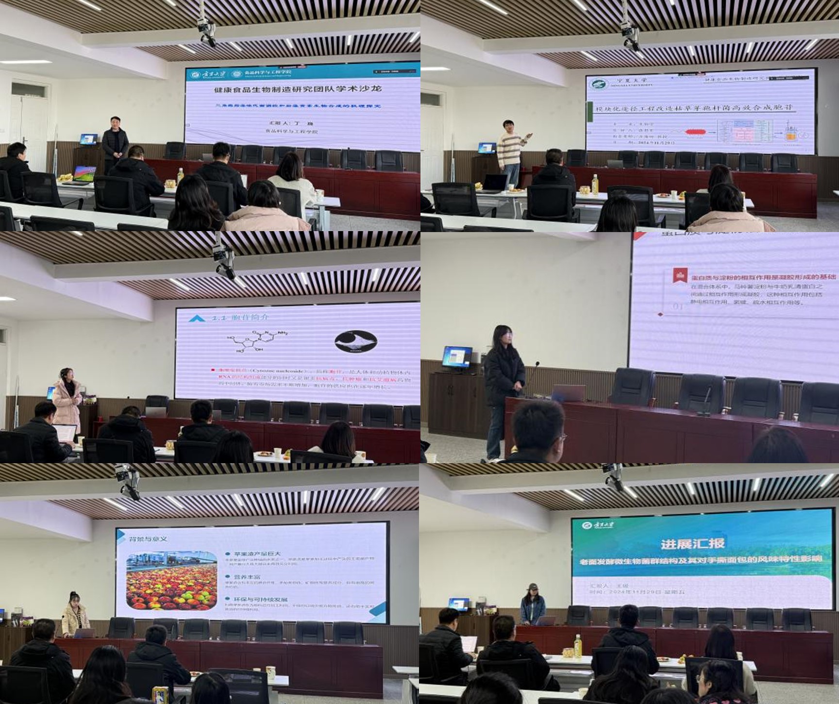 2024年11月29日,食品科学与工程学院健康食品生物制造研究团队“学术沙龙”活动在学院512学术报告厅成功举办。此次“学术沙龙”活动旨在通过组内师生分享最近的研究成果、交流研究经验和方法、探讨学术发展趋势,以激发研究生的创新灵感,为团队师生成长和学术发展注入新的活力,助力他们在学术道路上迈出更加坚实的步伐。团队教师和研究生、本科生30余人参与活动。