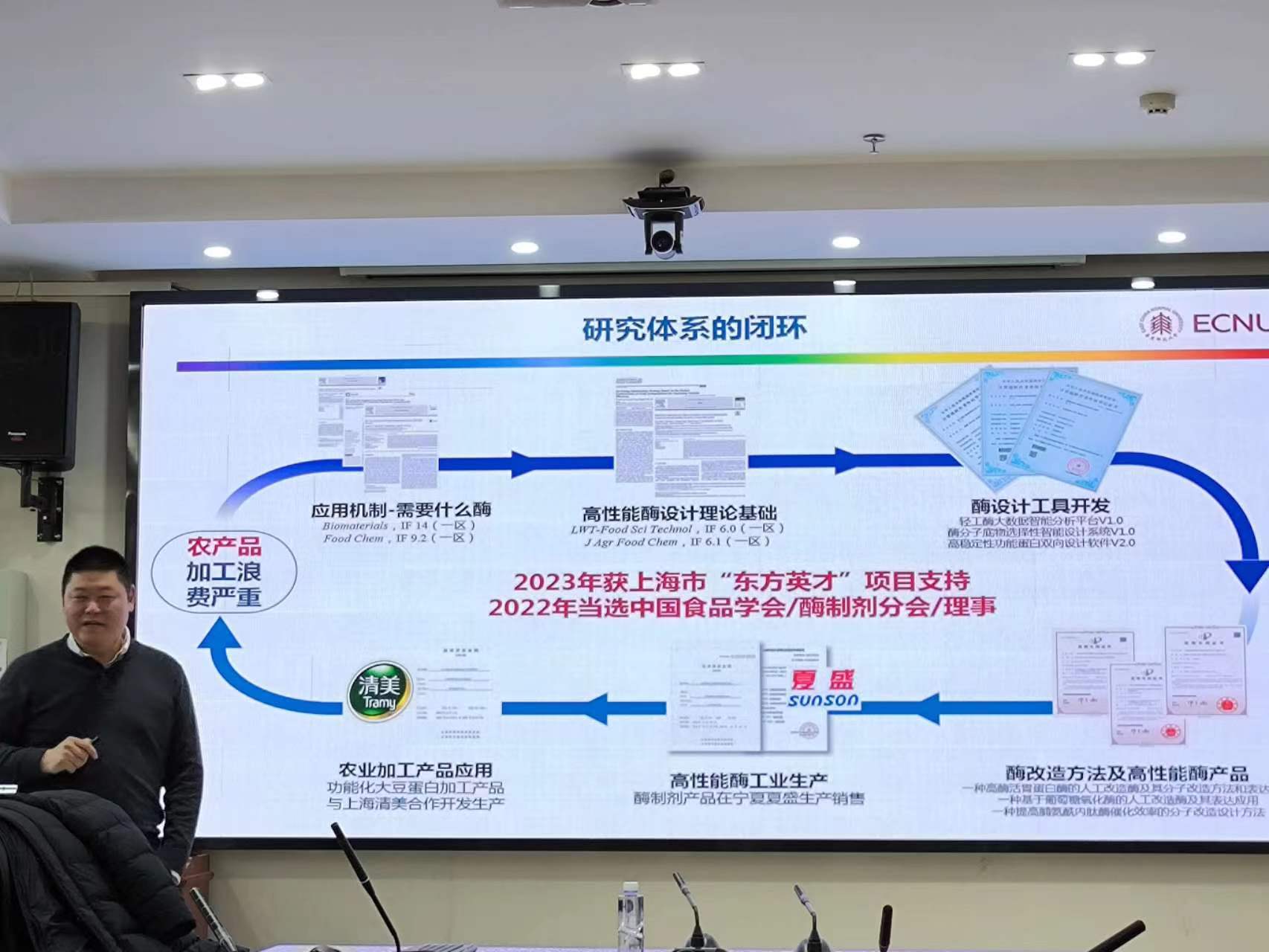 1月8日下午,我院特邀华东师范大学张鲁嘉教授在科技楼A410会议室作了专题学术报告。张鲁嘉教授以“基于蛋白酶定向生物转化的食品功能化加工”为题,从工业酶和食品酶分子的结构机制解析、理性设计和应用开发三方面进行了介绍,并结合食品研究领域就农产品高值化生物加工和酶的应用,蛋白质分子对接和点突变的软件设计、计算模拟、功能表征、互作作用等方面的研究进行了分享。我院中青年教师和研究生聆听报告并进行交流探讨。