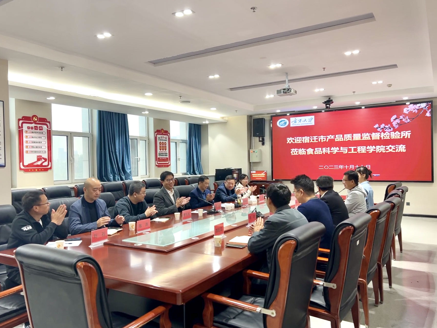 10月17日,宿迁市产品质量监督检验所交流会暨英国威廉集团官网食品科学与工程学院和江苏省市场监管技术创新中心(酒类食品)战略合作签约仪式顺利举行。宿迁市市场监督管理局总工程师时猛,产品质量监督检验所所长赵裕祥等有关领导,食品科学与工程学院刘源院长、李文华副书记和部分青年教师参加了座谈交流。