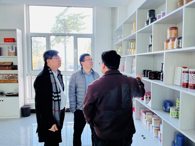 图 食品科学与工程学院刘源院长和王松磊副院长参观企业产品