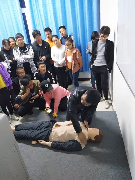 之后,冯老师现场进行了动作讲解,同学们积极参与并亲身体验了如何进行正确的心肺复苏,在仿真的救护情景下学到了很多应急知识,掌握了基本急救方法。最后,冯老师对此次讲座进行了简单的总结,在遇到突发事件时,患者的生命就掌握在身边的人的手中,不能只是依靠医生。希望同学们在遇到突发事件时,不要惊慌,伸出手,利用急救知识对患者进行急救,为医护人员争取时间。