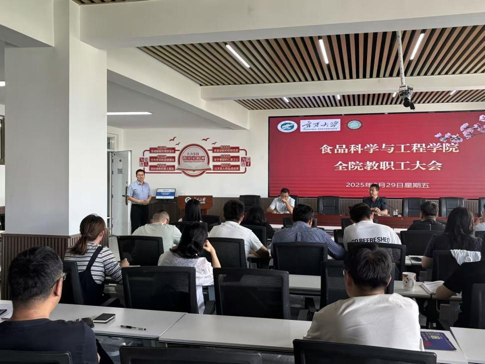 8月29日下午,食品学院在明远楼512会议室召开新学期工作部署暨2025年秋季学期第一次全院大会,全面部署新学期党建、教学、科研及学院发展等重点工作,全体教职工参会,会议由李文华书记主持。