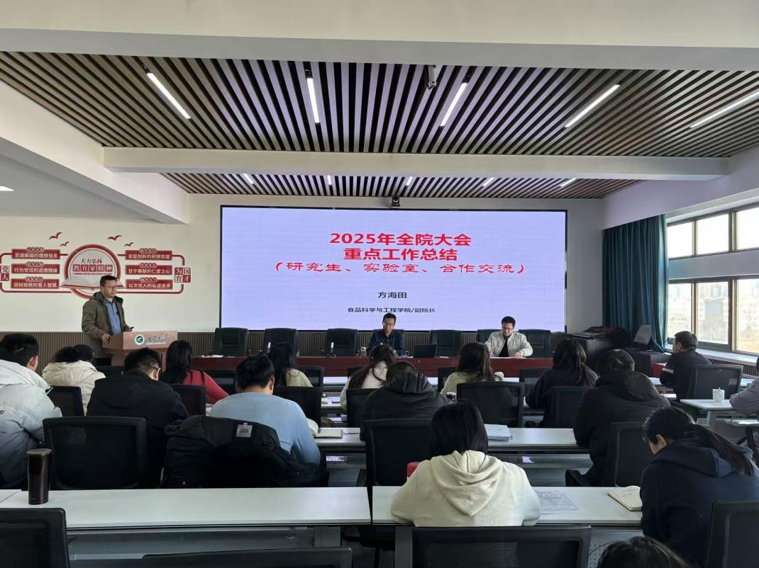 12月26日下午,食品科学与工程学院2025年秋季学期第四次全院大会在明远楼512会议室召开,对2025年度学院各项工作进行系统总结,并对2026年重点工作进行谋划部署。会议由学院党总支书记李文华主持,全体教职工参加会议。