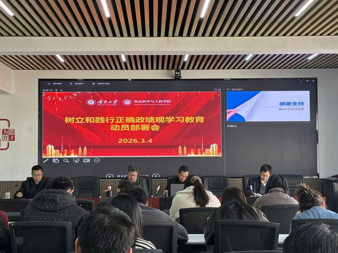 3月4日下午,食品科学与工程学院树立和践行正确政绩观学习教育动员会在明远楼512会议室召开。会议由王松磊主持,全体教职工参加会议。