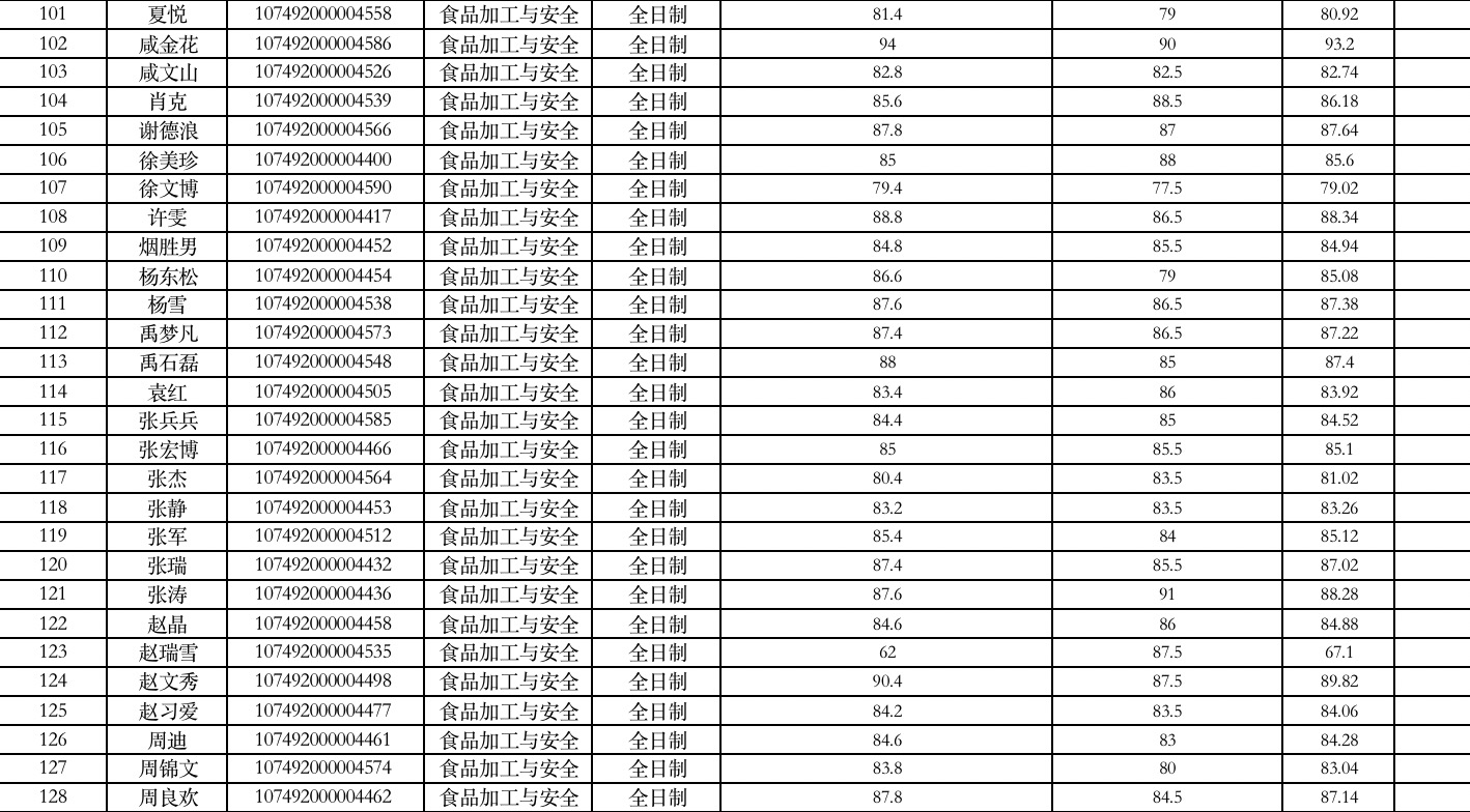 食品与葡萄酒学院2022年硕士研究生招生一志愿通过国家线名单