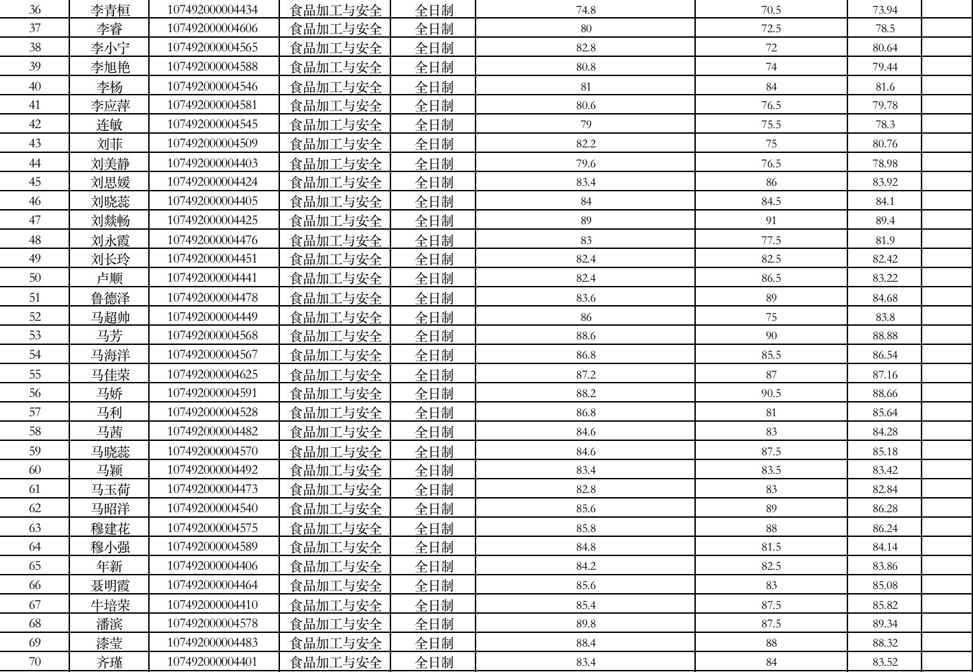 食品与葡萄酒学院2022年硕士研究生复试成绩