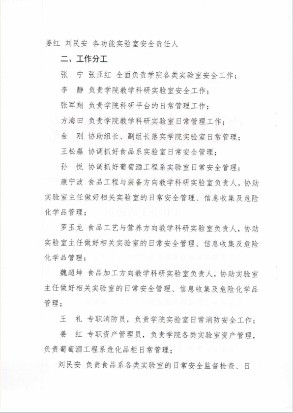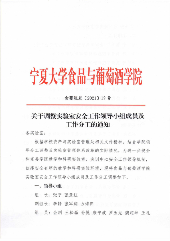 关于调整实验室安全工作领导小组成员及工作分工的通知