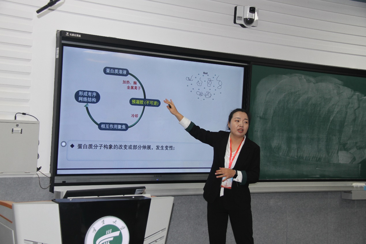 傅婧老师此前在食品科学与工程学院首届青年教师教学基本功大赛中荣获第一名,代表学院参加校赛。学校对此次青年教师教学竞赛活动予以高度重视,通过教学竞赛活动“以赛促教,以赛促学”,加强青年教师职业能力建设,深化教学设计创新和教学改革,全面提升青年教师的教学水平和创新能力。