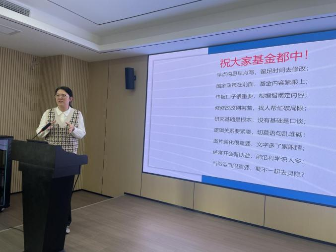 会议邀请江南大学化学与材料工程学院董亮亮教授做《国家自然科学基金申请浅析》讲座。董教授就如何凝练选题、突出创新、立意构思、选择申报代码、夯实研究基础、完善申报书等方面向参会教师分享了经验。2024年获批国家自然科学基金面上项目、青年基金的童赟、田宇两位教师代表结合自身经历,围绕研究选题、申报书撰写、立项依据及研究方案等方面,分享了体会,提供了宝贵的参考。