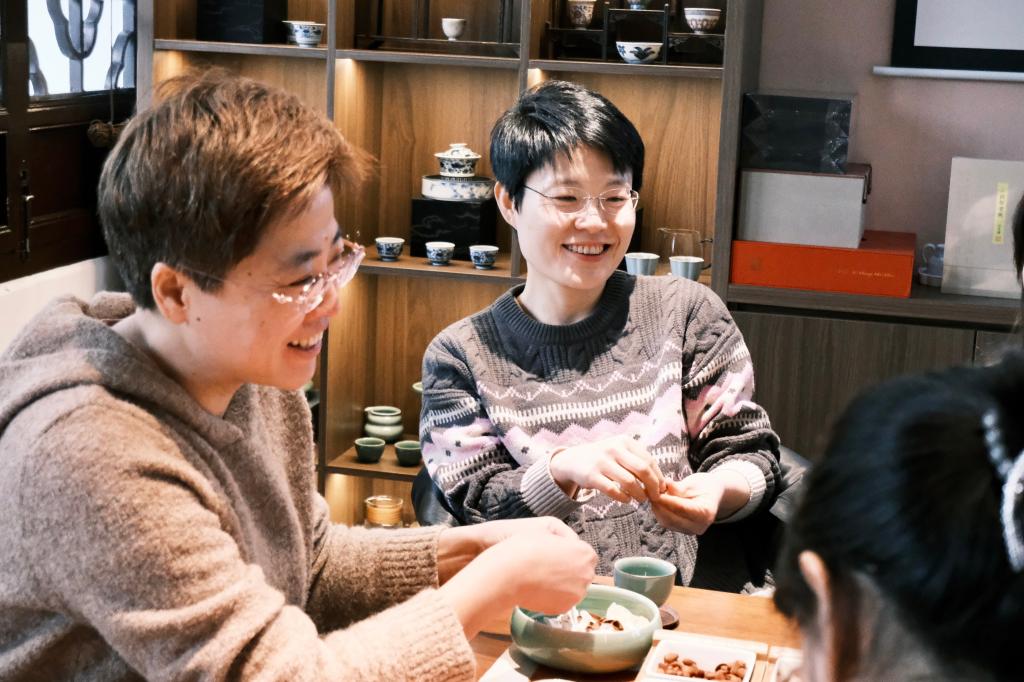 活动中,老师们围桌而坐,煮茶漫谈。只消片刻,便从繁忙的日常工作中抽离出来,忘却了烦恼忧愁,在快节奏的现代生活中找到了属于自己的悠闲步调。现场一片欢声笑语,既传递了节日的美好祝愿,也促进了老师之间的亲密交流。