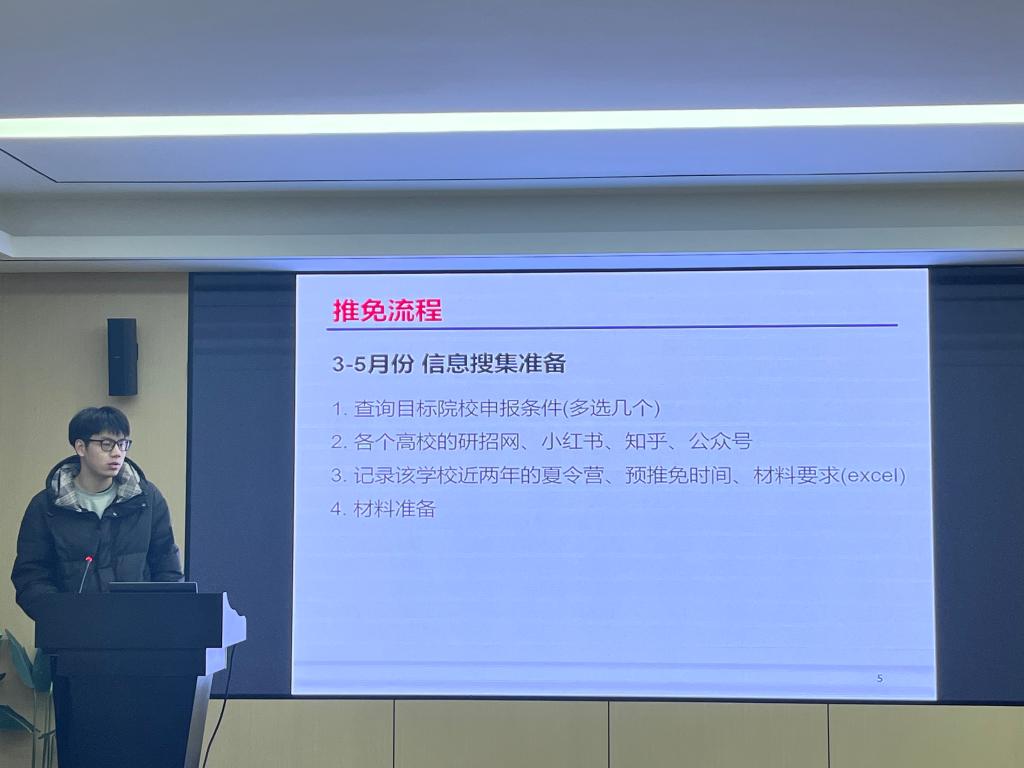 3月3日,学院举办推免学子分享会,先后邀请了20级优秀学子丁佳伟、林海慧、刘冉冉、邵嵊煜分享自己的学习心得、科研经历、夏令营与推免流程。他们鼓励学弟学妹们积极进取,认真学习,主动参加科研训练与竞赛活动。“时光不负有心人”,机会留给每一个有准备的人。