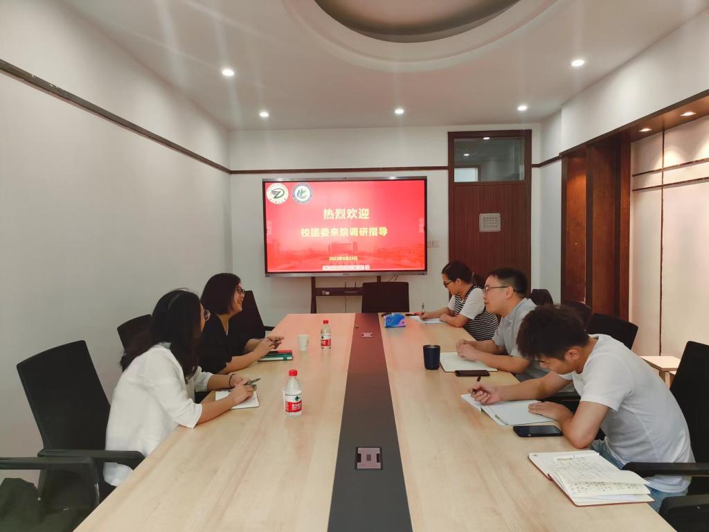 9月22日下午,校团委书记祝莺莺、校团委办公室主任倪泽莹一行来院走访调研,学院党委副书记王勇能、学工办主任胡丽和全体辅导员参加座谈会。