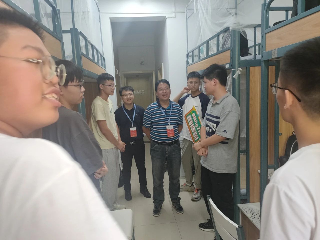 9月10日下午,学院党委书记施鹏,执行院长张伟,副院长左彪、党委副书记王勇能、学工办胡丽等一行前往新生宿舍走访慰问,为小萌新、小研新送去师长的关怀与寄语,并耐心了解学生居住情况,听取大家对宿舍环境的需求和建议。同时,也鼓励同学之间相互团结帮助,努力学习专业知识,争做堪当民族复兴大任的时代新人。