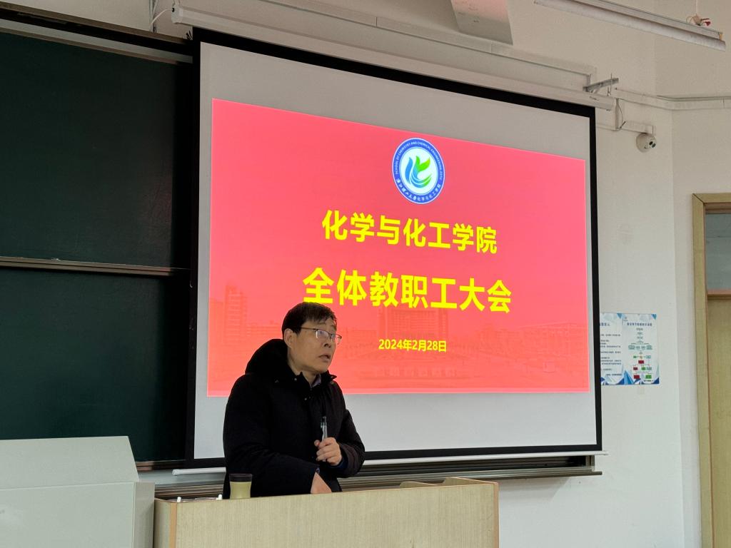 施鹏传达了校领导在新学期学校工作部署会上的讲话精神,分析了学院目前面临的形势以及挑战。他指出,全体教职员工要抢抓机遇、奋发向前,以高标准的姿态完成本学期各项任务,为学校的优势学科做好支撑,为学校争创“双一流”贡献力量。