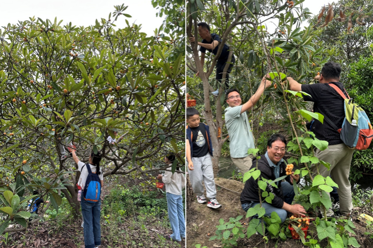 下午,老师们前往美丽乡村塘西村体验采摘枇杷。走入原生态的果林,金黄诱人的枇杷挂满枝头,大家分工协作,各显神通,难得再一次体会儿时爬树摘果的童年乐趣,千方百计地将枝上的枇杷收入囊中,欢声笑语不断。大家纷纷表示,品尝完塘栖有名的白沙和红沙枇杷,“虽岭南荔枝,无以过之矣”。