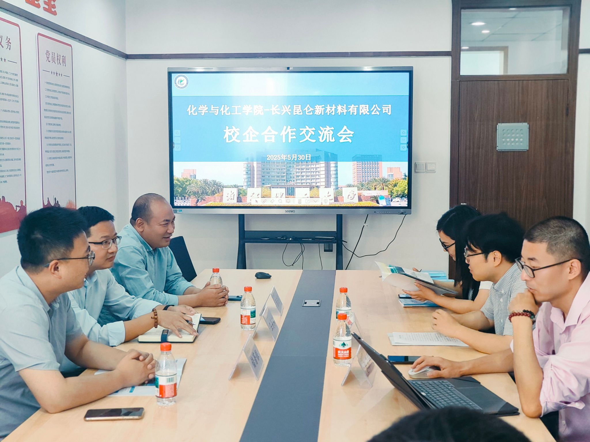 为深入推进校企合作,长兴昆仑新材料有限公司副总经理王传水、人力资源总监杨玉明、招聘经理储著银一行来访英国威廉集团官网。学院党委副书记王勇能、化学系副教授郭云南、学工办主任胡丽、就业辅导员等接待王传水一行。双方在19号楼522会议室召开座谈,2025届毕业生代表一同参会。